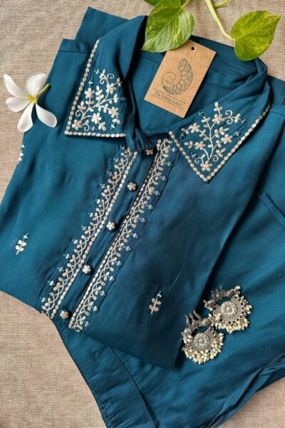 “Tara” Blue Handcrafted Co-ord Set(2 pc)