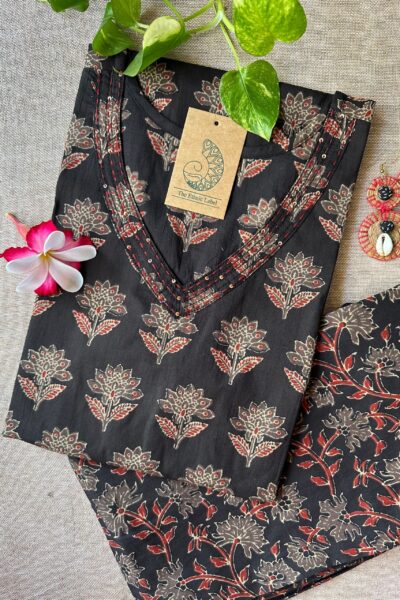 “Zubeida” Ajrakh Hand block printed kurta set (2pc)