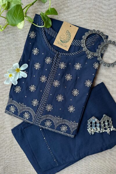 “Tara” Hand Embroidered Blue Kurta Set(2pc)