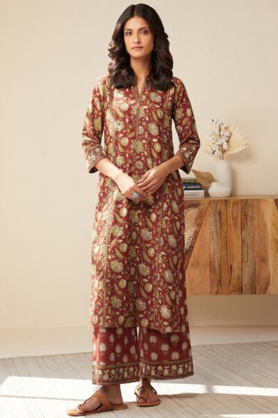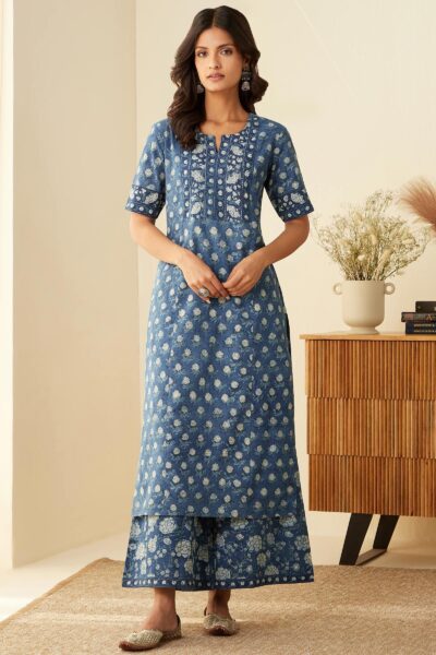 Syona Blue Boota Hand Block Printed Cotton kurta