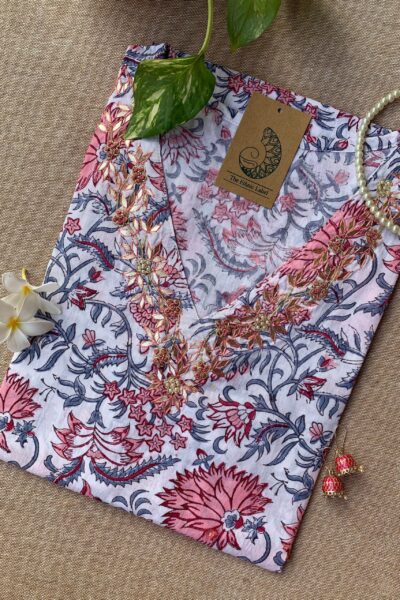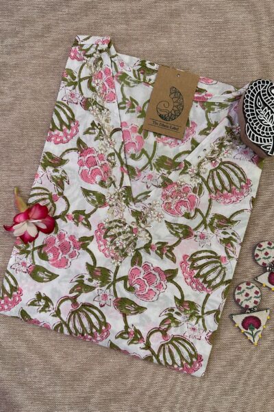 “Sunaina” Hand Block Printed Laced Cotton kurta – Big Size