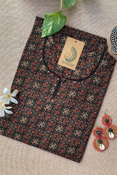 “Sudha” Ajrakh Hand Block Printed Cotton kurta