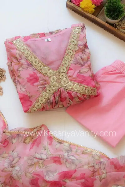 Zaki Inaayat Gulabi Chiffon Floral Suit Set