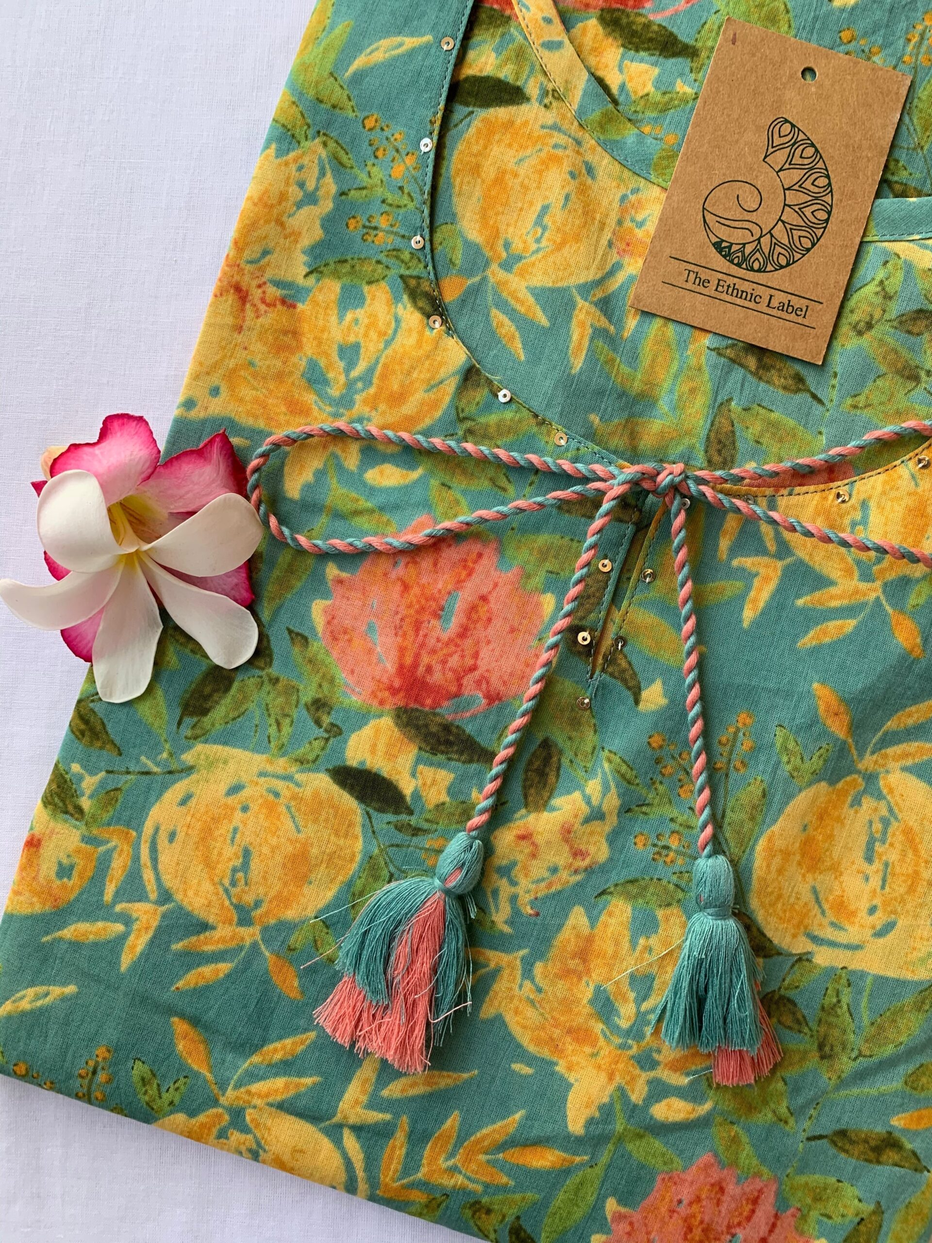 “Daffodils” Sanganer Hand Block Printed Tassel Cotton Kurta