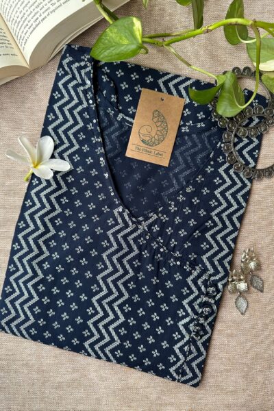 “Ira” Blue Angrakha Cotton Kurta