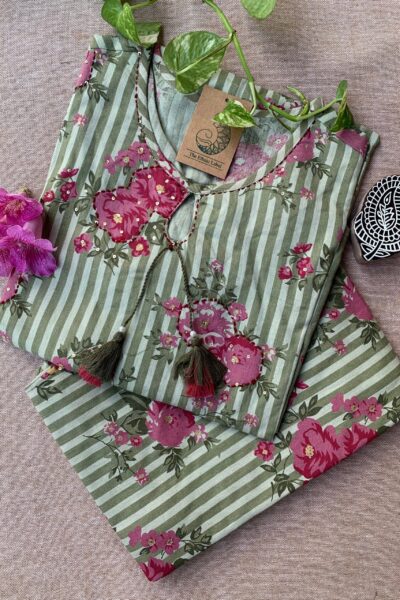 “Ojaswi” Hand Block Printed Floral Cotton kurta