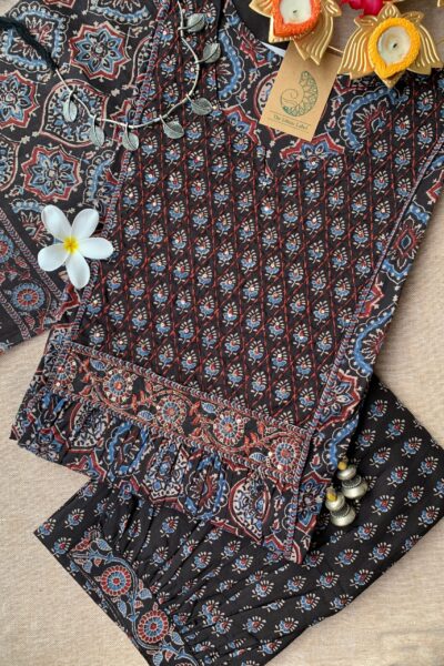 “Noora” Black Ajrakh hand block printed suit set(3 pc)