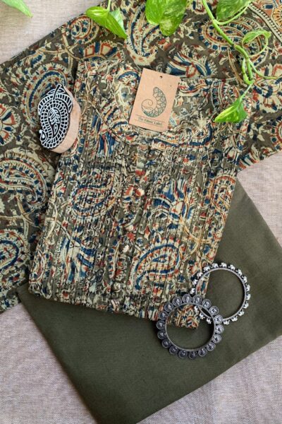 “Harsha” Kalamkari Hand Block Printed Cotton Kurta Set(3pc)
