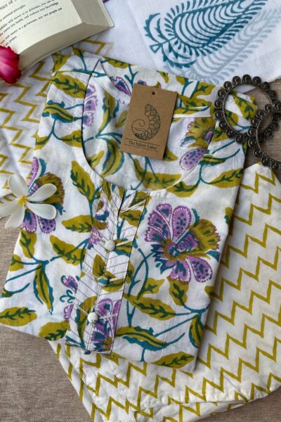 “Ojaswi” Hand Block Printed Floral Cotton kurta