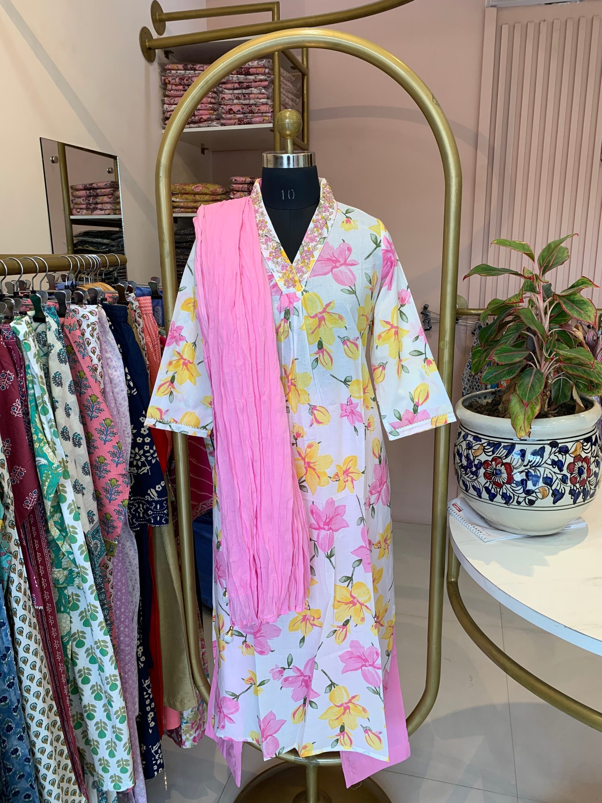“Nupur” Cotton Kurta Set with Pants and Dupatta- 3pc