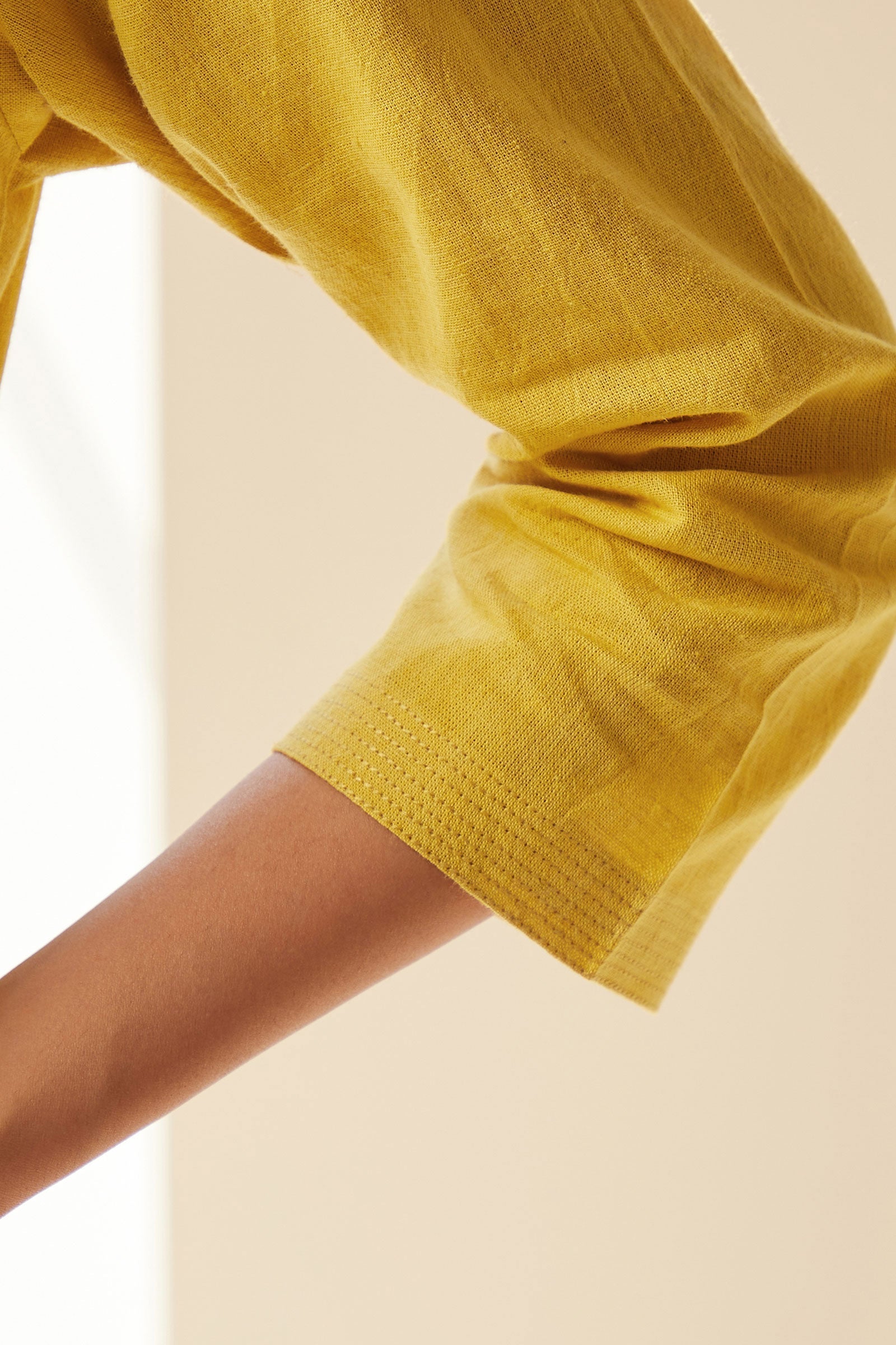 Showcasing the classic charm of monochrome, the Roza Seher Daffodil Kurta exhibits a pleasing yellow tone. Styled in a Straight silhouette, this breezy Kurta comes expertly handcrafted in soft Cotton Linen fabric. For added comfort, it features deep pockets on either side.