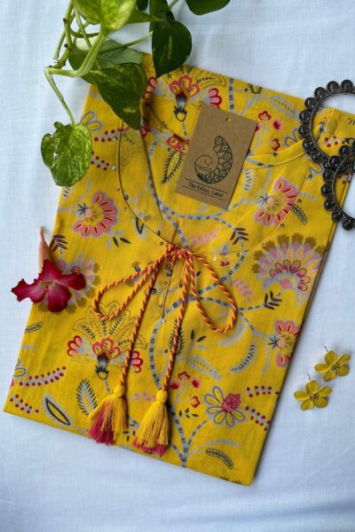 “Flavia” Yellow Sanganeri Hand Block Printed Cotton kurta