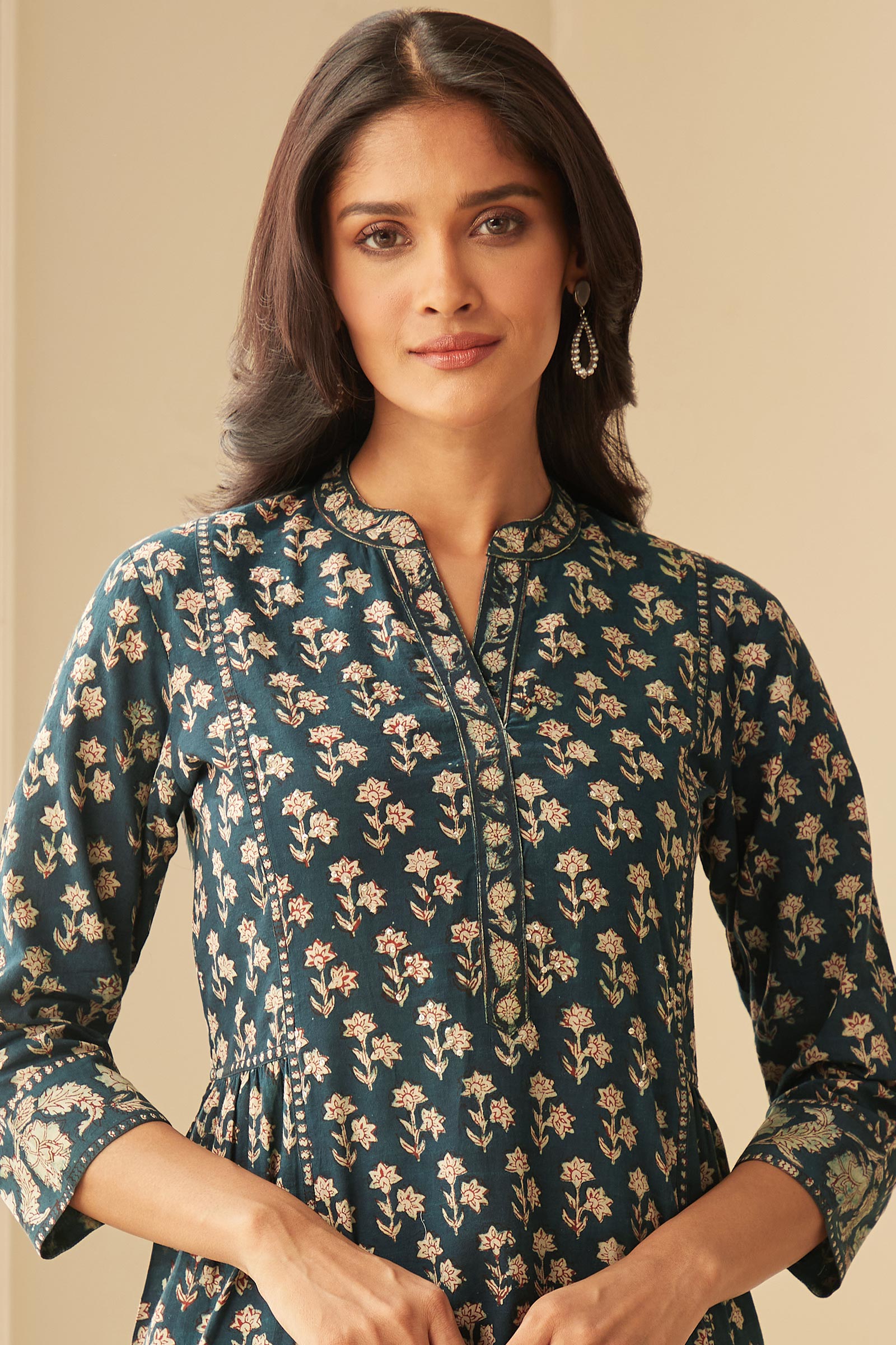 “Charu” Hand Work Embellished Cotton kurta