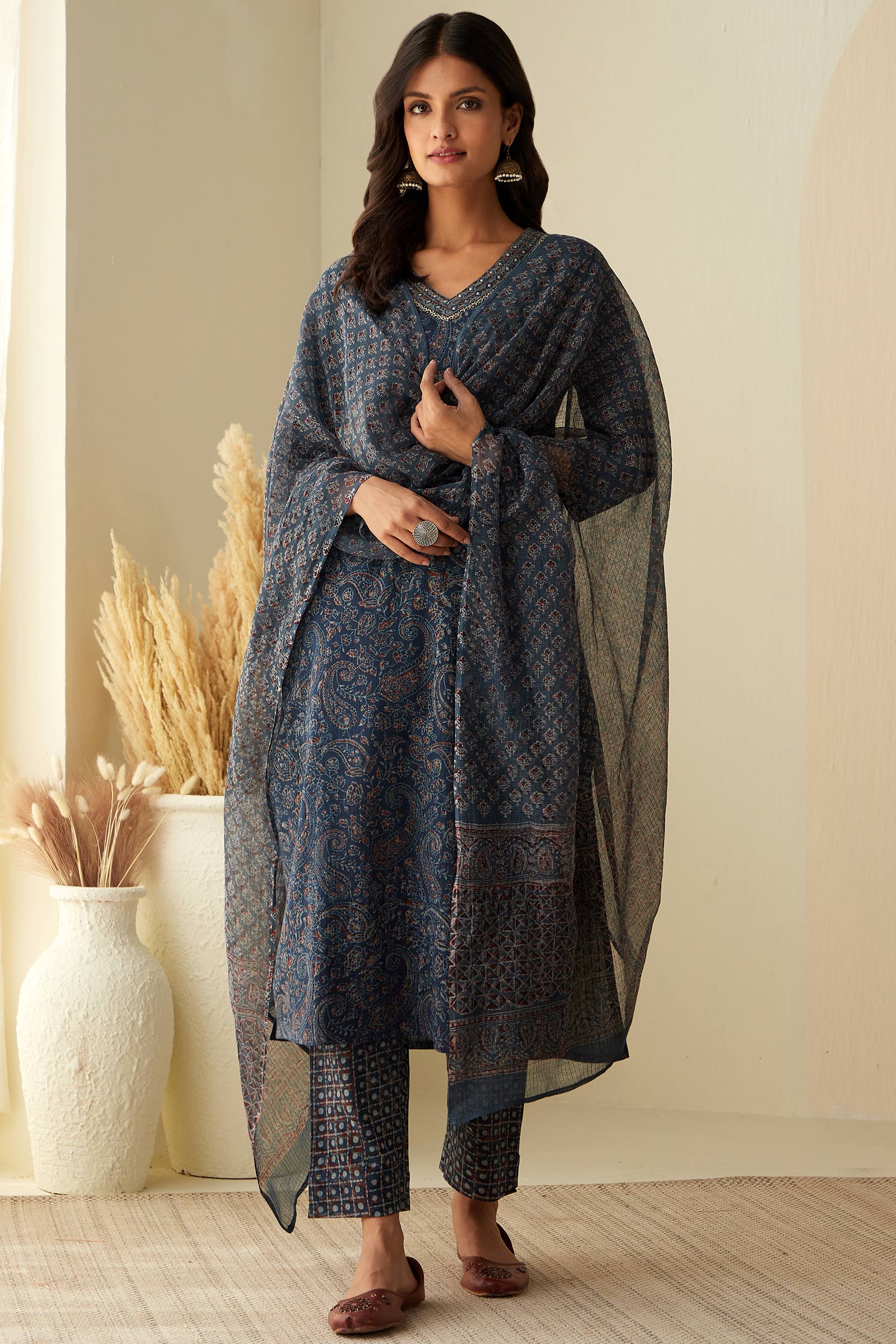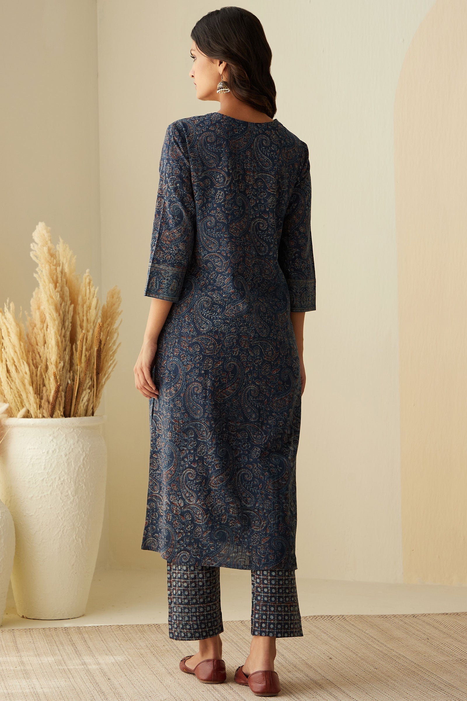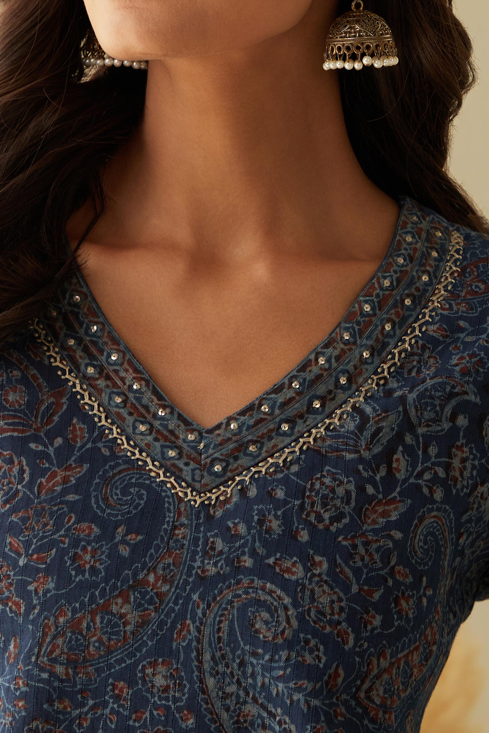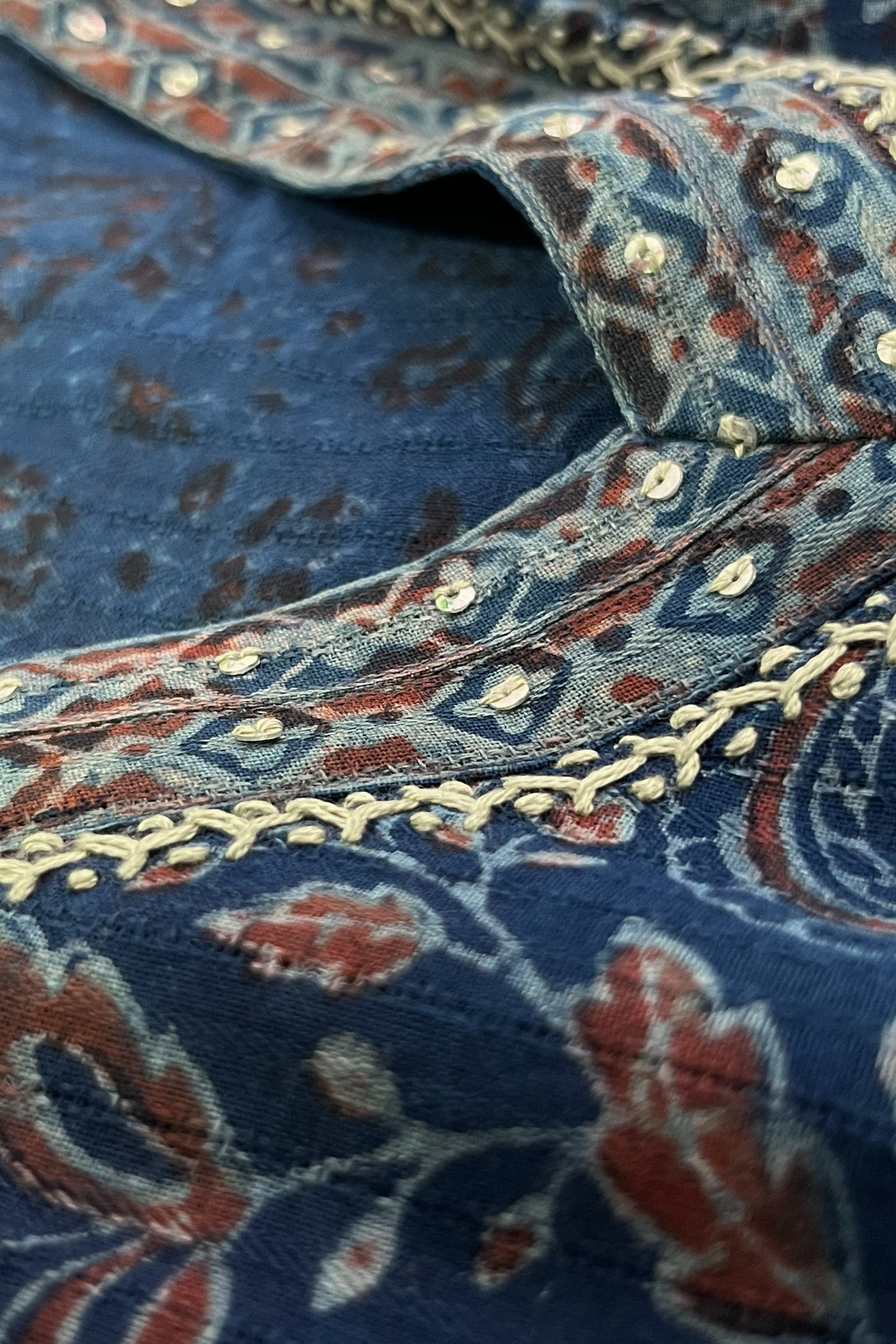 “Aiza” Ajrakh Hand Block Printed Cotton kurta