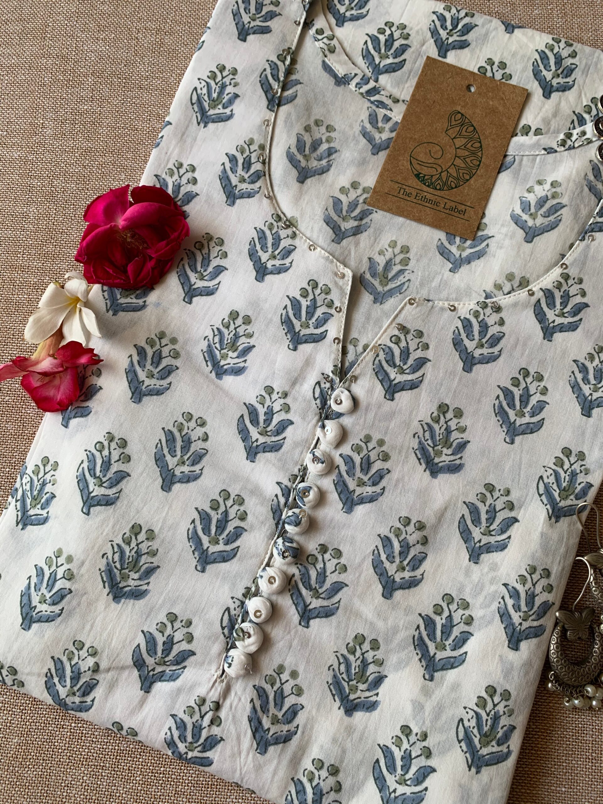 “Geet” Blue Flora cotton Kurta